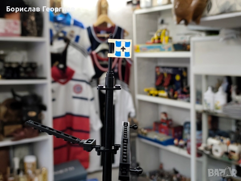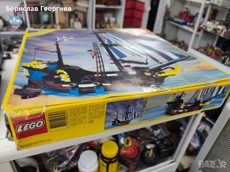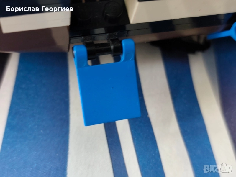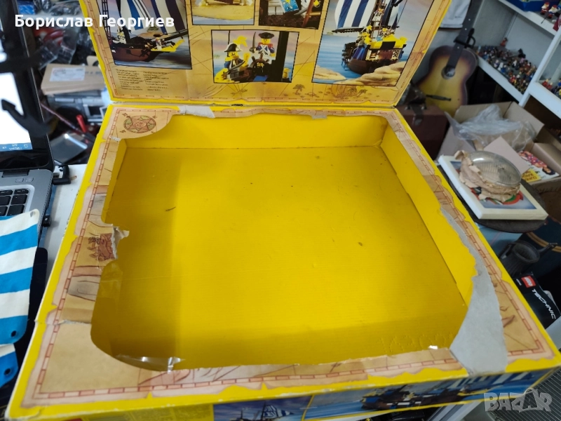 Комплекта е с кутия ,която е със забележки видни от снимките.Няма инструкция.Губернатора заедно с другите части са в добро състояние.Липсва една синя част която е на последната снимка.На предпоследната снимка се вижда едно от малките сини платна,на четири от тях по един държач е спукан.