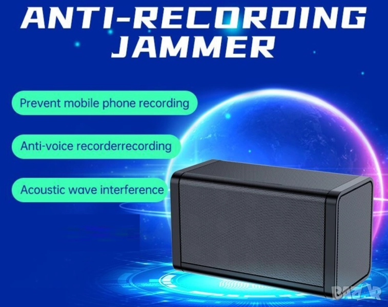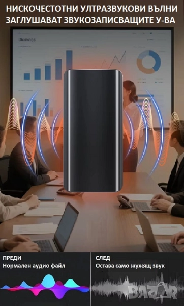 на подслушване. Устройството против записи защитава пространството чрез