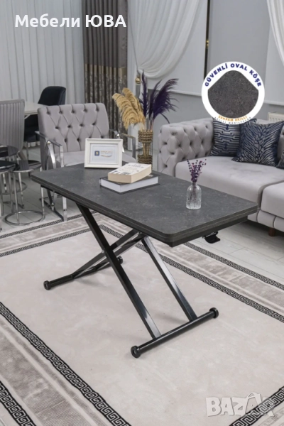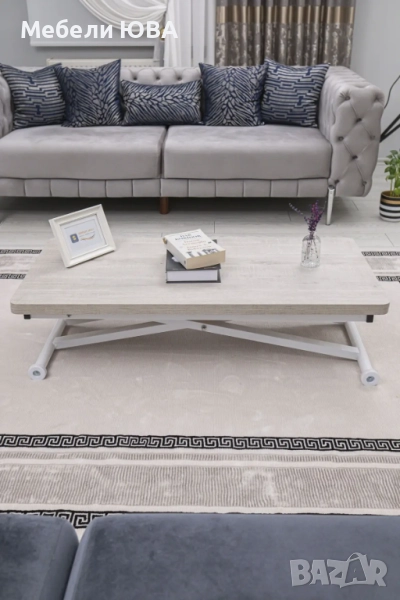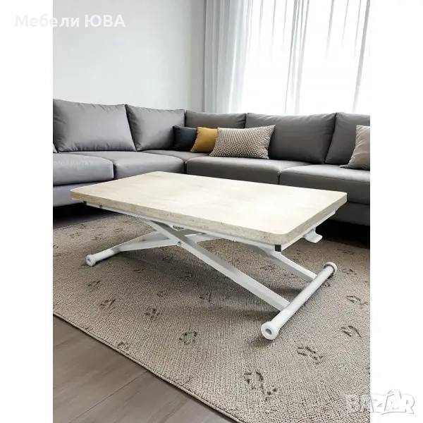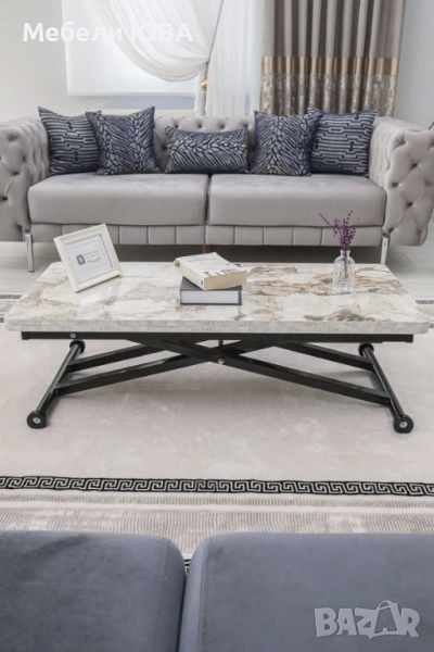Практическа употреба: Масичката за кафе лесно се повдига и спуска благодарение на своя амортисьорен механизъм. Можете да я регулирате на желаната височина и да я използвате удобно.