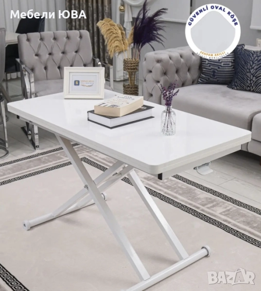 масичката предлага множество приложения във Вашия дом, спестявайки ви място. Тази масичка съчетава функциите на маса за хранене, маса за пода, масичка за кафе и бюро в един продукт. Модерният и стилен дизайн я прави перфектна алтернатива на големите маси за хранене. Тя е с овални ъгли, безопасни за деца.