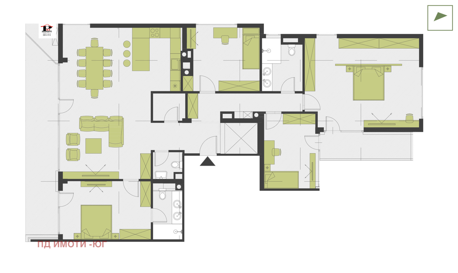 Предлагам на вашето внимание панорамен многостаен апартамент в луксозения комплекс RUHouse 2.Комплекса се намира в полите на Витоша и жилището разполага с гледка към планината и града, отлична локация в район с множество градски удобства, съвременни архитектура и дизайн, изпълнена с висококачествени материали с изключително внимание към детайлите. Намира се до парк 'Лозенец', бъдеща метростанция и на броени минути от мол 'Парадайс', два големи хипермаркета.Важно предимство на комплекса е голямата площ на богато озеленения двор с атракционна водна зона и поддържани градини с разнообразни зони за отдих и градинско осветление. Жилището е със следното разпределение: входно антре,просторна дневна с кухненски бокс и трапезария с прекрасна гледка към Витоша , четири спални към две от тях баня с тоалетна, трета баня с тоалетна, три тераси с гледки към Витоша и вътрешният двор.Апартамента се предава на шпакловка и замазка, блиндирана входна врата, отопление на газ с изцяло изградена инсталация.Предлагаме в цената и двоен гараж.