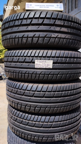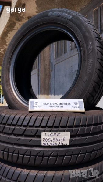 4 ЛЕТНИ ГУМИ марка - TIGAR 205X55R16 DOT 0623 грайфер 8.5 мм. с борд !!! 4 броя като нови !!! 4 броя цена/брой 35 евро.