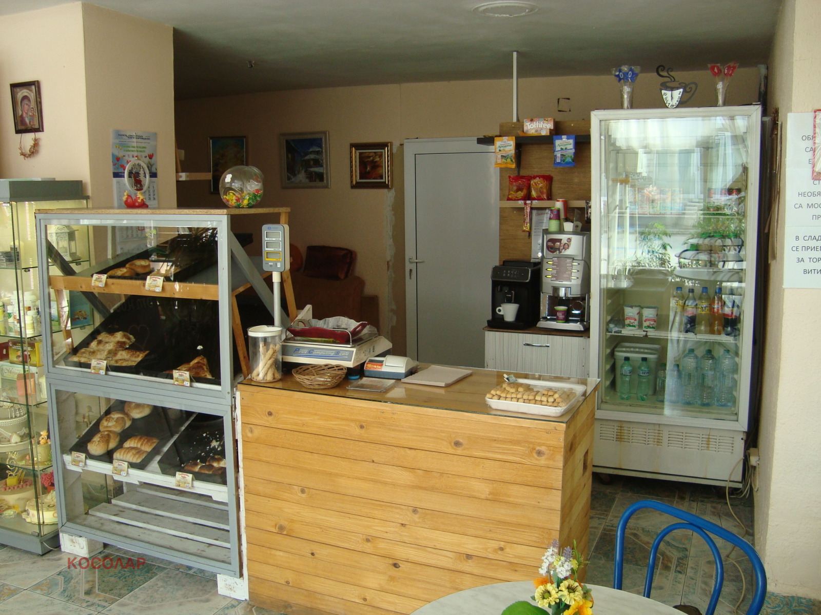 фризер и хладилник, три витрини, комбиниран хладилник с фризер, 4бр. солидни метални маси, конвектомат, месачка за закуски тип Руска тройка , тави за печене, заготовки за сладкиши, 4бр. клиентски маси с 12 бр. столове. Поради високото качеството на предлаганата продукция, обекта се радва на много постоянни клиенти, като към момента сладкарницата и пекарната снабдяват 15 търговски обекта с хлебни изделия и сладкиши. За повече информация и организиране на огледи, моля обадете се на посочения в обявата телефонен номер. Водещ брокер - Пенчо Бахчеванов.