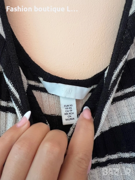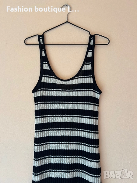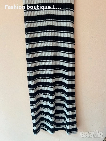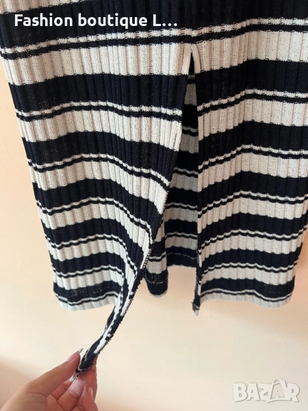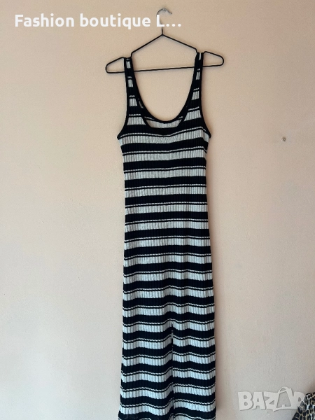 H&M Дълга рипсена рокля на черно/бежово райе с малка цепка отзад XS по етикет,но по-скоро е S / M 🖤 → Обява 52051549