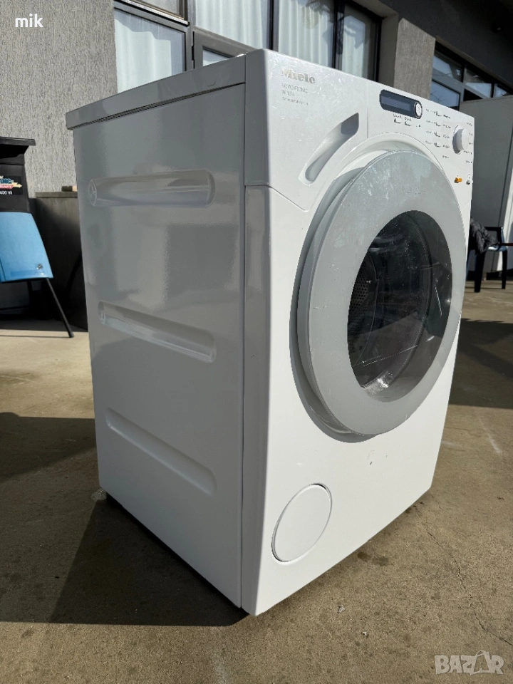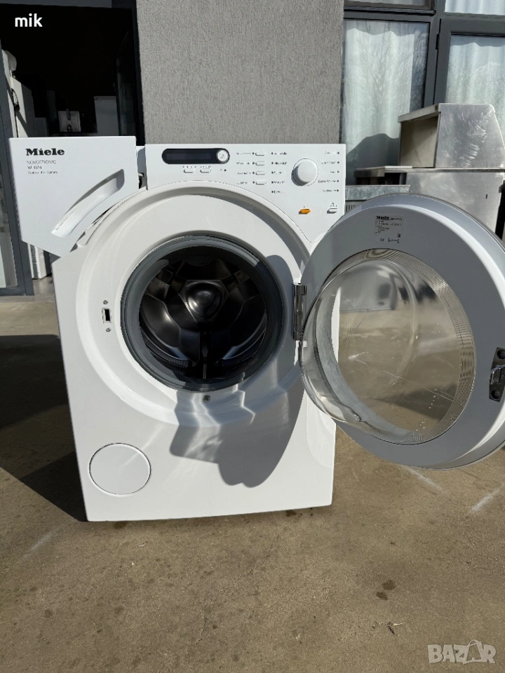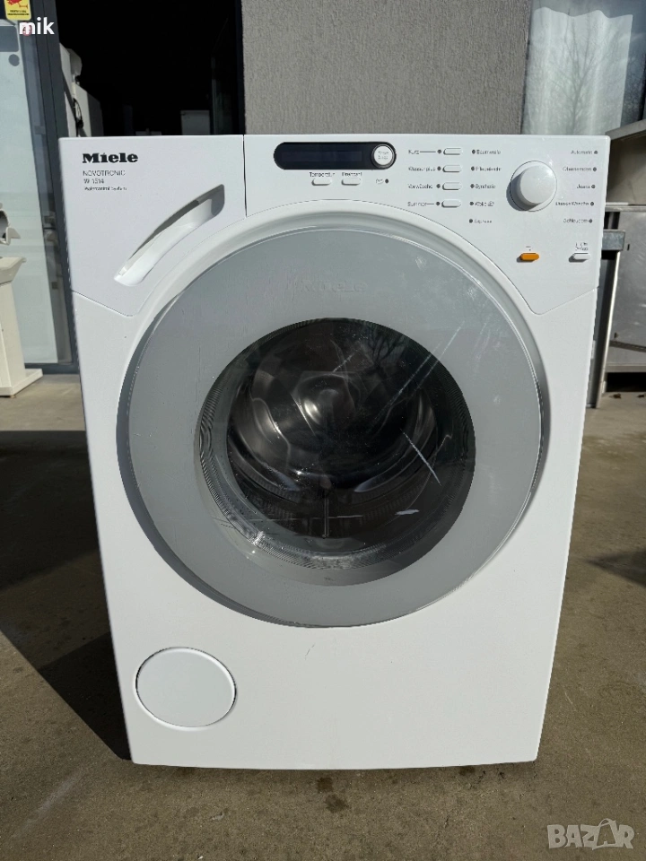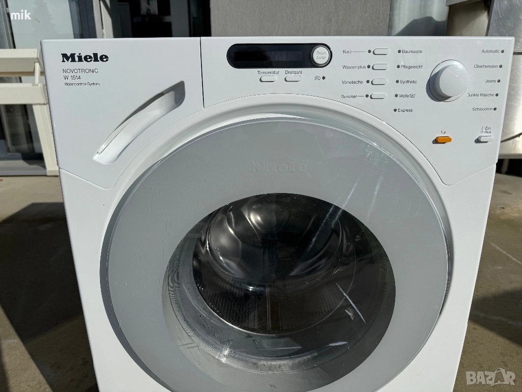 Пералня Миеле модел Новотроник 1514. Сив люк. Размери 85-60-60. За 7 кг пране. Произведена в Германия за немския пазар. С ел. дисплей за настройване на програмата. Казан - неръждаема стомана. Леска за работа. Голям отвор за по-удобно слагане и вадене на прането. Оборудвана с маркучи. Готова за употреба.