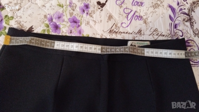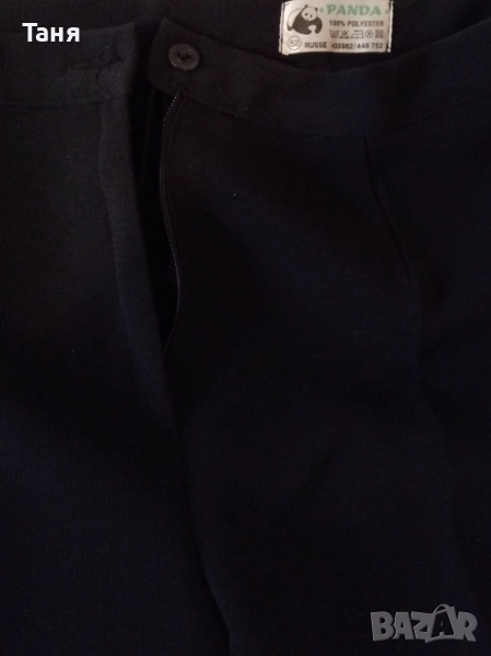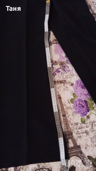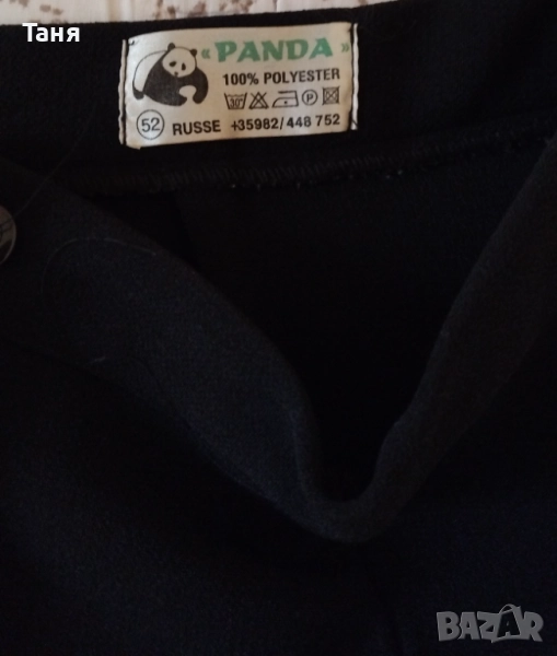 Продавам женски панталон в черен цвят. Номер 52. Материал - 100 % полиестер. Дължина на крачола 104 см. Дължина от вътрешната страна на крачола 78 см. Повече информация за размерите на панталона има в снимките.