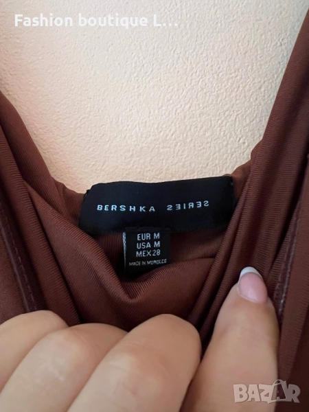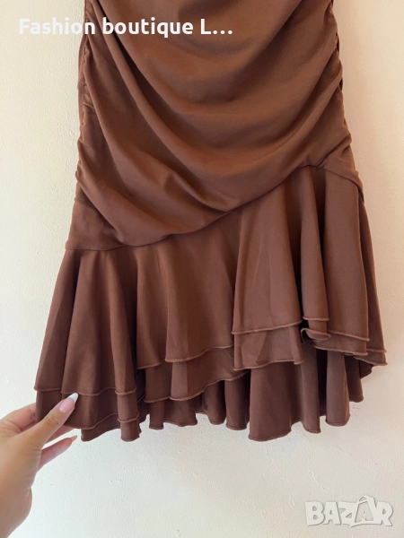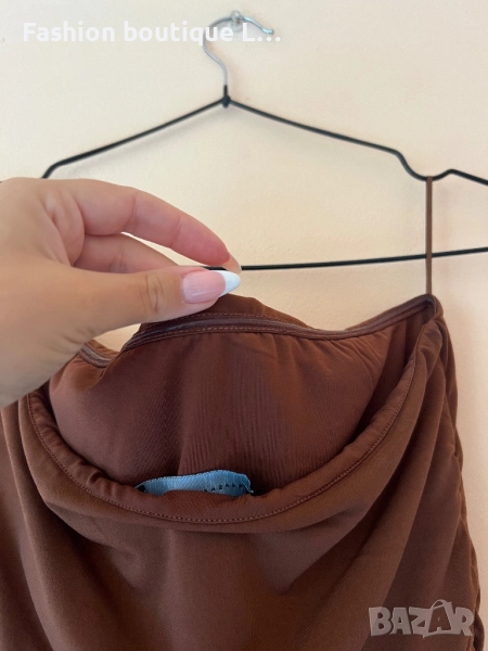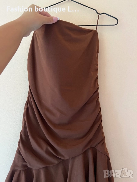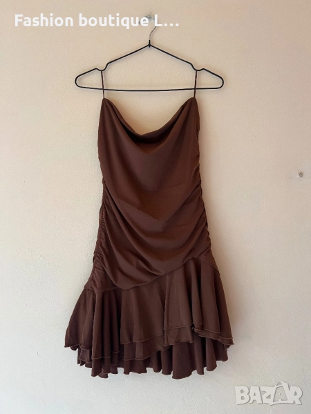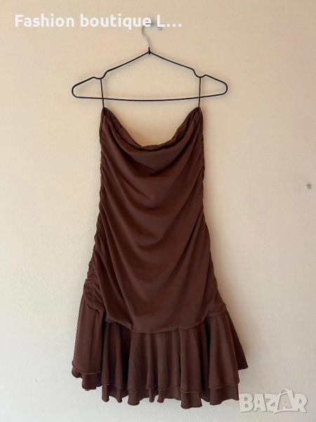 Кафява рокля без презрамки М размер на марката Bershka със силиконова лента за да не пада 🤎🤎🤎🤎 → Обява 52052189