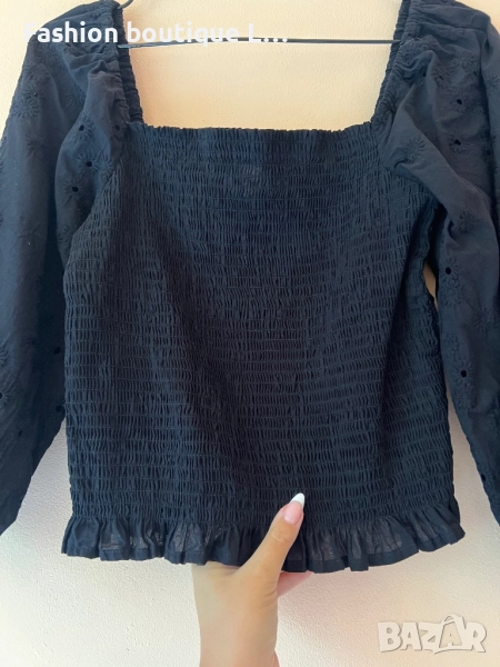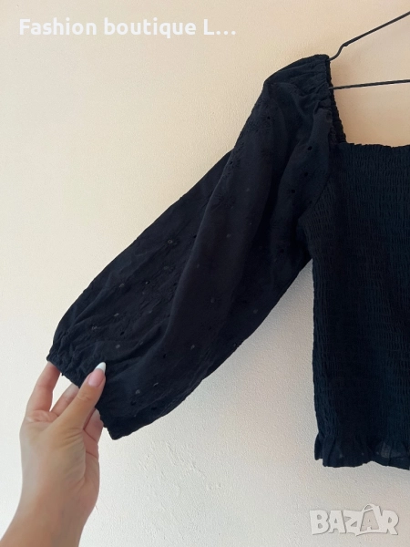 Черна бандажна блуза с буфан ръкав M / L размер 🖤 → Обява 52052209
