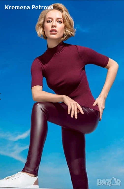 Снимка 1 : Нови Комплекти от Клин от екокожа и Поло от релефен трикотаж с къс ръкав.