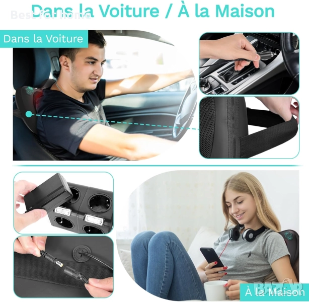 Практична работа с автоматично изключване: тази масажна възглавница се изключва автоматично след 15 минути, идеална настройка за избягване на прекомерна употреба, която може да доведе до допълнителна болка. Лесна за употреба, трябва да се включи в контакт, за да работи (включен е 1,8 м кабел).