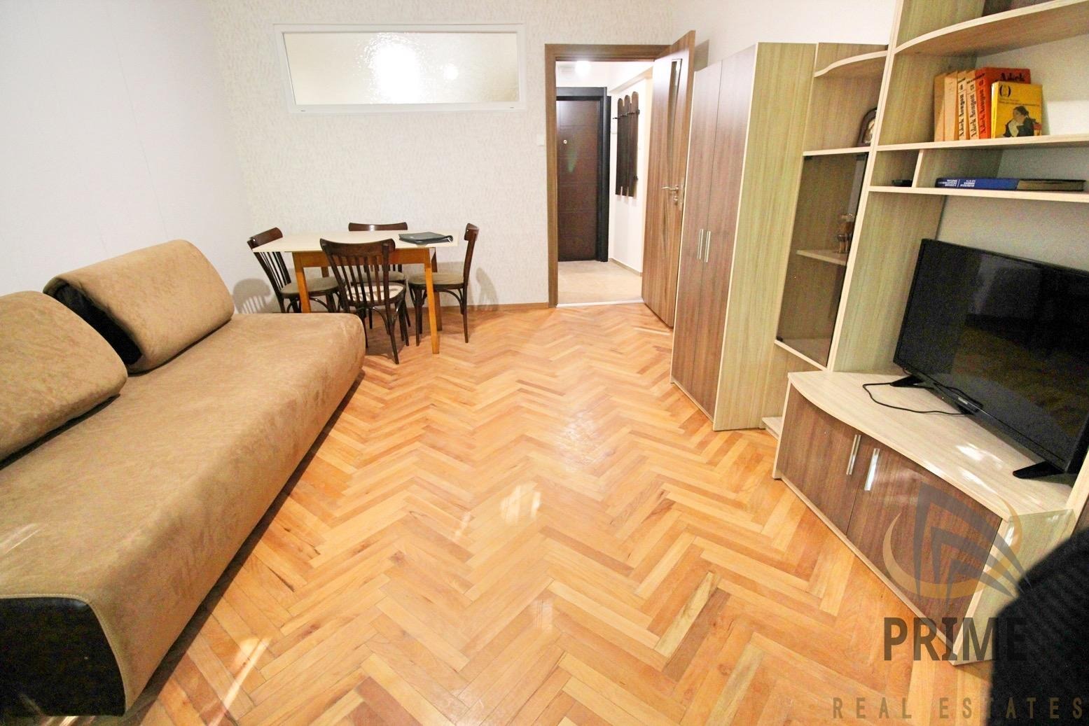 С функционално разпределение на стаите, без преходи: хол, отделно кухня, спалня, баня с тоалетна и тераса. Основно почистен и готов за наемане.