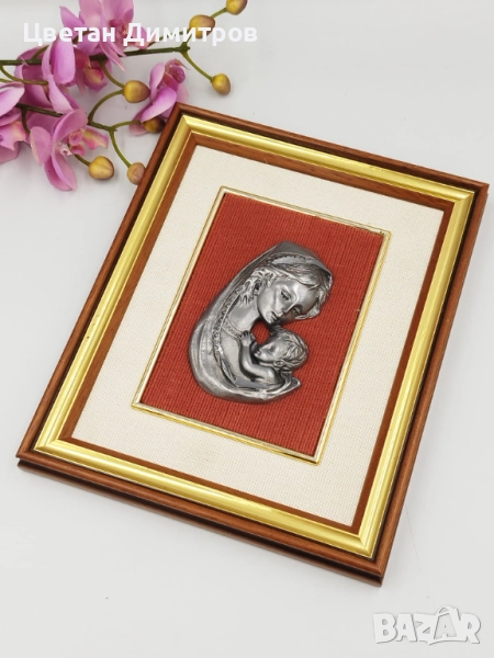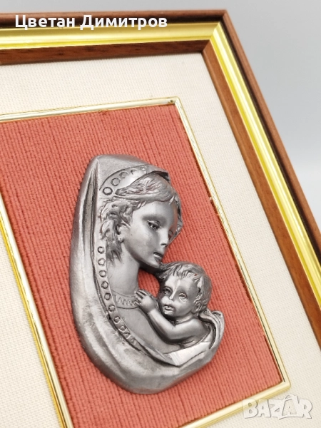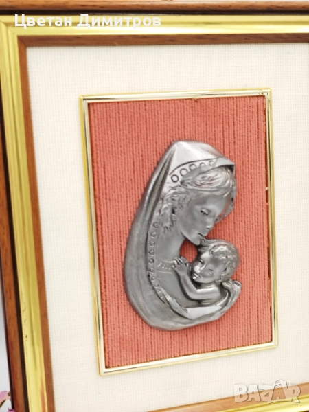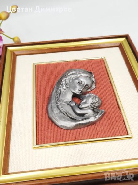 Винтидж стенна картина Мадона с дете в дървена рамка → Обява 52052785