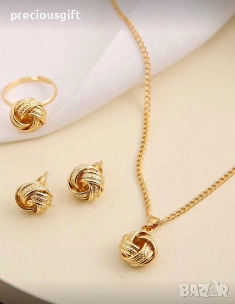 Комплект бижута - гердан, обеци и пръстен, снимка 1 - Бижутерийни комплекти - 52052974 Комплект бижута - гердан, обеци и пръстен, снимка 2 - Бижутерийни комплекти - 52052974 1/2