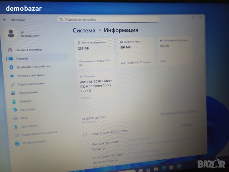 17.3' HP AMD A8/12GB РАМ/256GB SSD/Бат. 4 часа/Radeon R5 → Обява 52052976