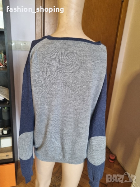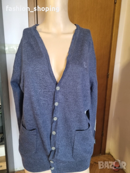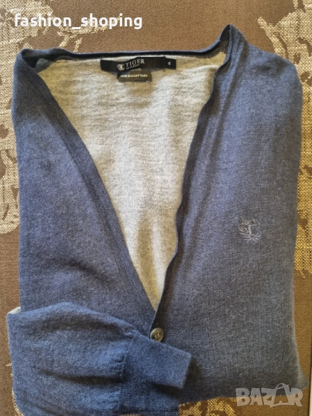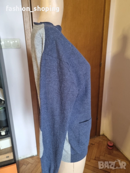 Стилна мъжка жилетка на скандинавския бранд Tiger of Sweden. Нестандартен и много интересен дизайн. Предна синя част и ръкави със сив гръб и сиви акценти на лактите, както и сиви копчeта. С два странични джоба отпред. Подходяща за господата, които предпочитат по-елегантния стил. Комбинирана с риза или поло в сиво би стояла чудесно.