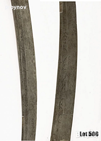 меч, стил катара, острие с полусърповидна форма с мотиви, медно/месингова кания