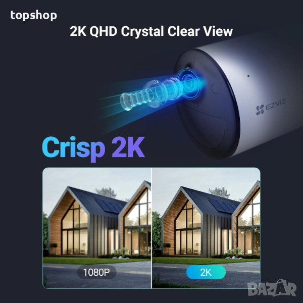 2K висока резолюция и 15M кристално нощно виждане: Наред с кристално чистото 2K видео качество, CB3 4G предлага ясно нощно виждане, за да осигури спокойствие дори в пълен мрак. Това ви позволява да виждате важни детайли. С приложението EZVIZ можете да чувате и виждате какво се случва и да разговаряте с посетителите си.