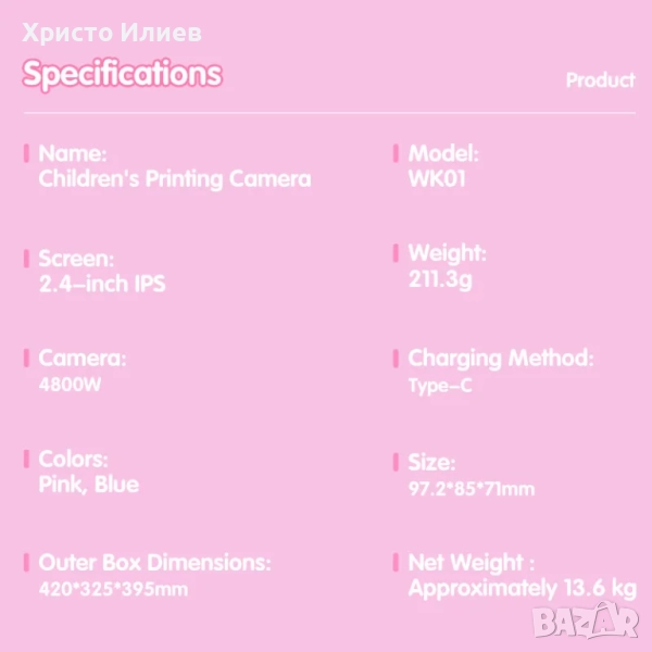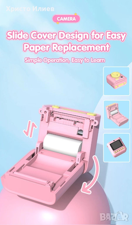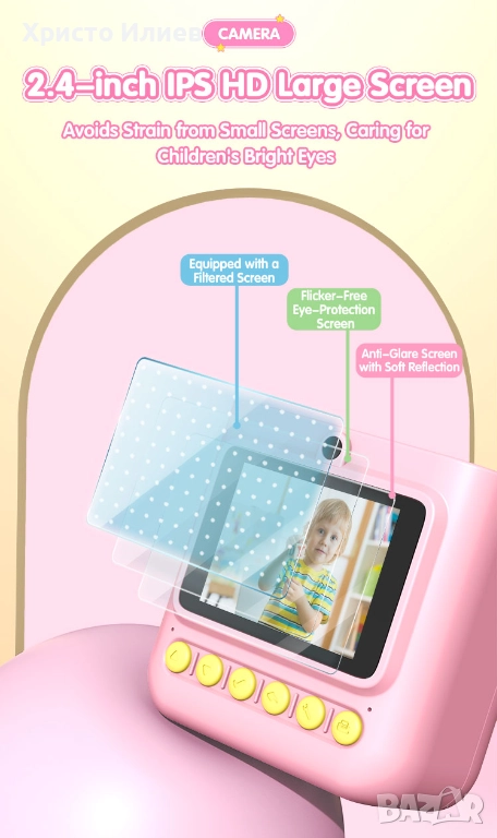 2.4-инчов HD IPS камера за мигновен печат, 240*320 резолюция, вграден MP3 плейър и забавни игри