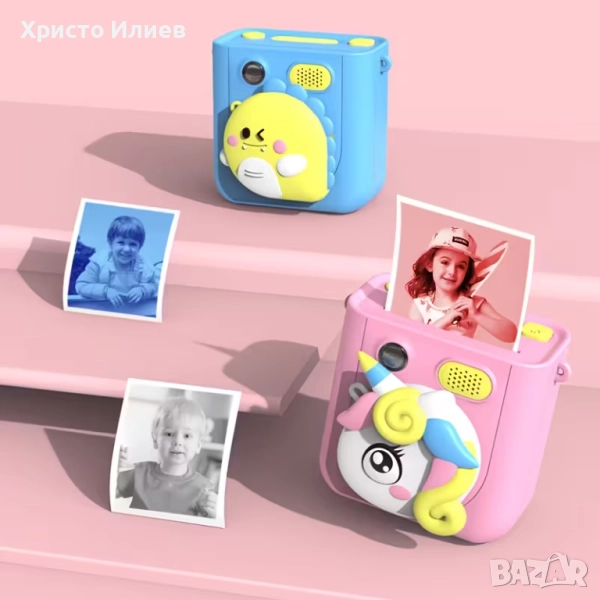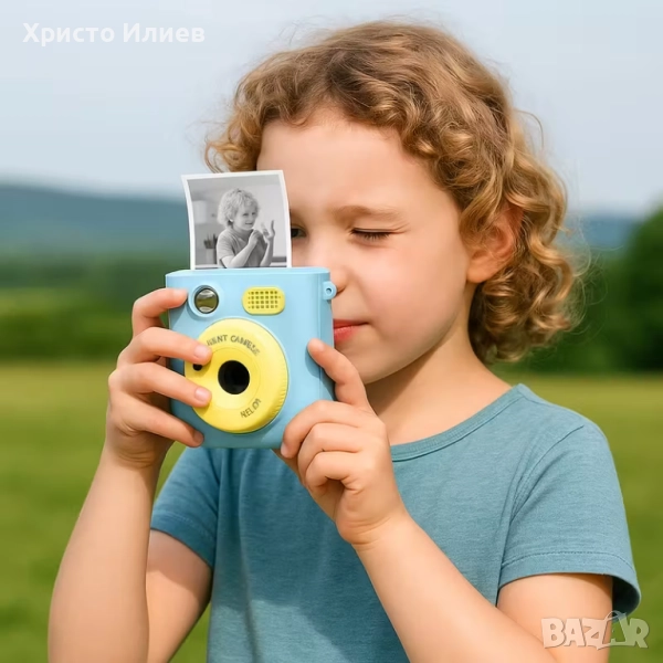 Детска камера с функция за печат Детски фотоапарат с дисплей за моментни снимки Син