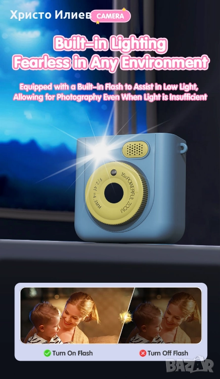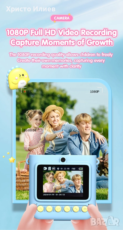 1080P Full HD видеозапис, заснемане на моменти на растеж, качеството на запис 1080P позволява на децата свободно да създават свои собствени спомени, улавяйки всеки момент с яснота
