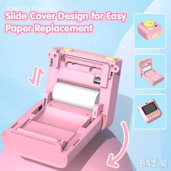 Включва 3 ролки хартия, карикатурна силиконова калъфка, стикери и каишка