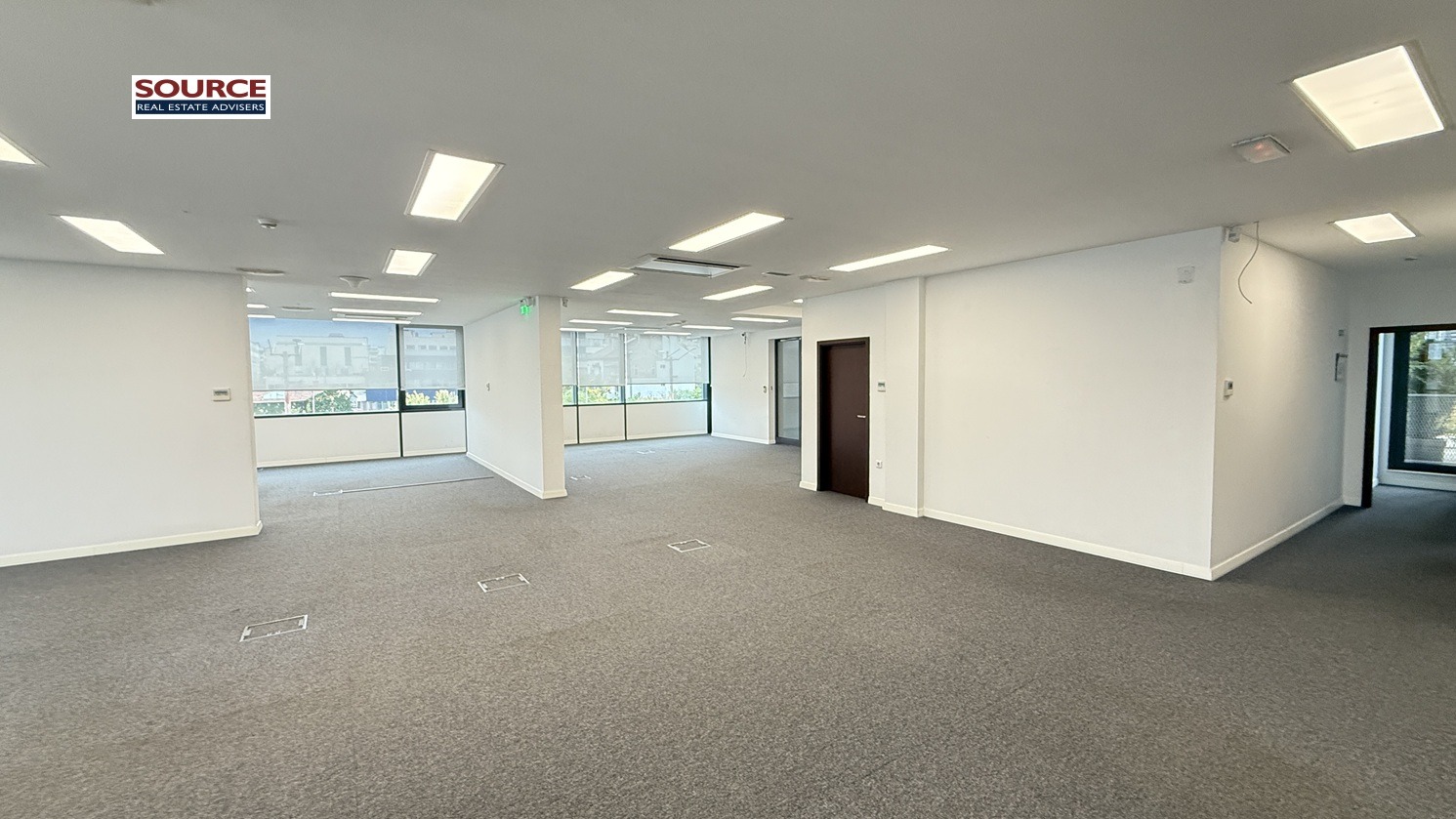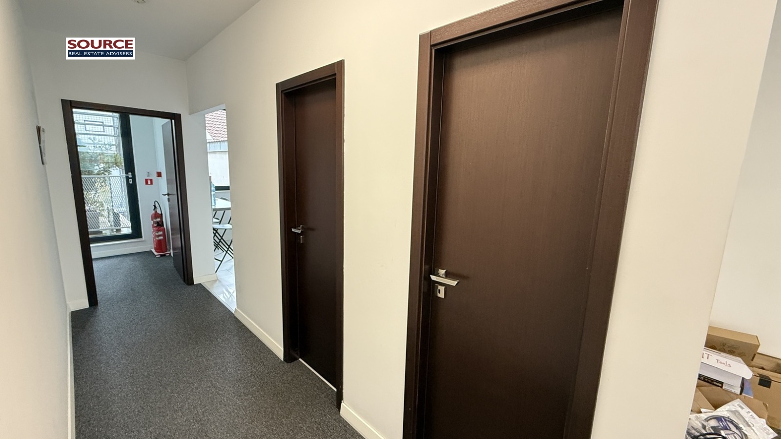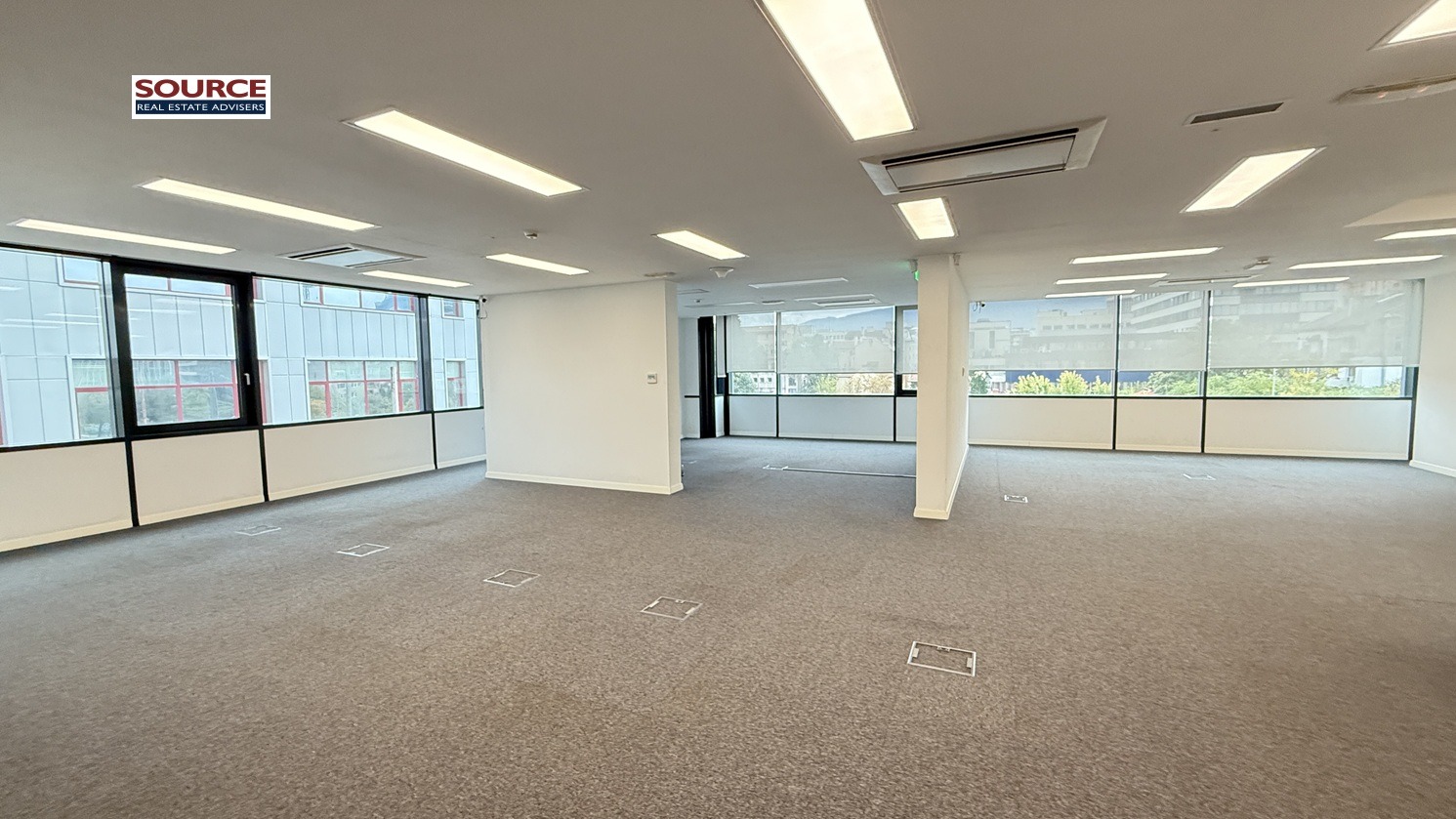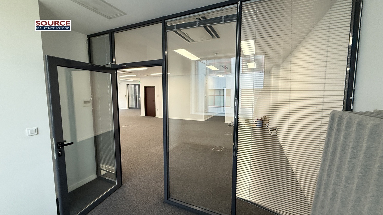 2. Разпределение: 1 голямо Open space помещение, 1 отделно работно помещение преградено със стъклени и гипсокартонени преградни стени, оборудвана кухня, сървърно помещение, 2 wc. Офисът може да бъде изцяло с Open space разпределение или допълнително преграден според изискванията на Наемателя.