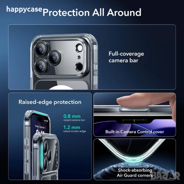 > Кейса е с вграден магнитен пръстен, съвместим с MagSafe технология за безжично зареждане и всякакви MagSafe аксесоари, включително и стойки в автомобил