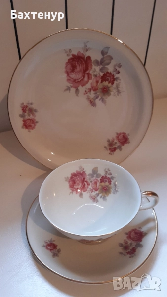 Красиви сетове от фин баварски порцелан, включващи чаша 200мл, подложена чиниика 15см. и десертна 20 см.Цената е за сет