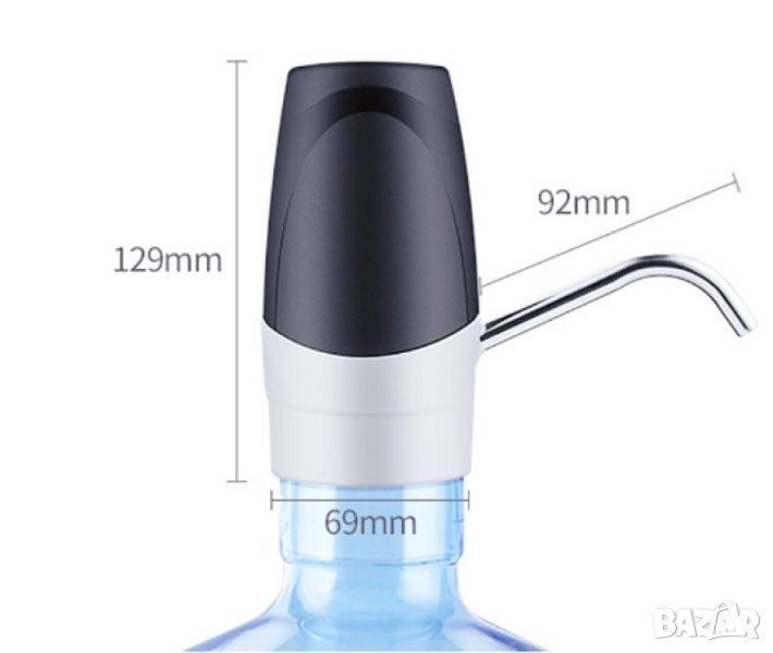 Ел. помпа за бутилки. Безжична и лесно преносима. Употреба чрез натискане на бутон. Адаптер за бутилки от 3,5,8,10 и 11 л. Подходяща и за бутилки от 19 л. (без пластмасовия адаптер). USB захранване. Тръбичка от неръждаема стомана. Индикатор за зареждане
