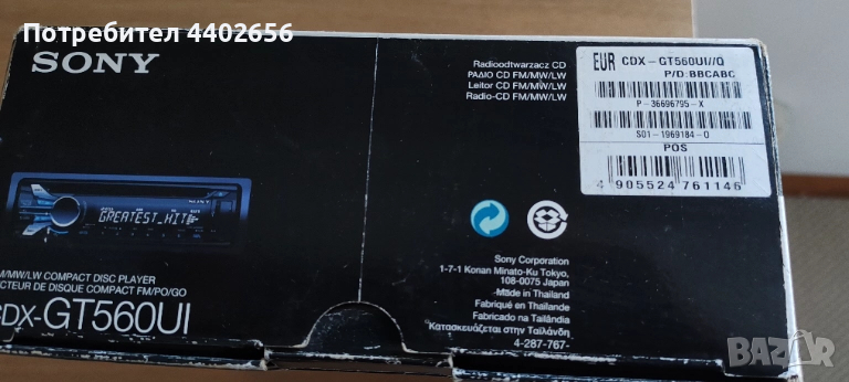 SONY CDX-GT40U Автомобилно аудио → Обява 52056262