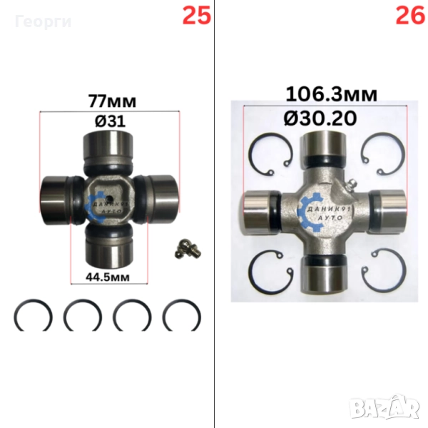 25. Каре кардан Ф 31 х 77мм ( вътрешни зегерки ) - 41,00 лв. ( 20,96 € )