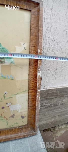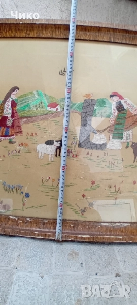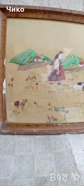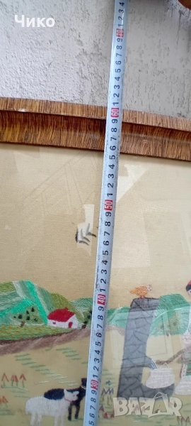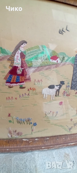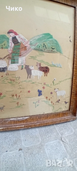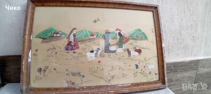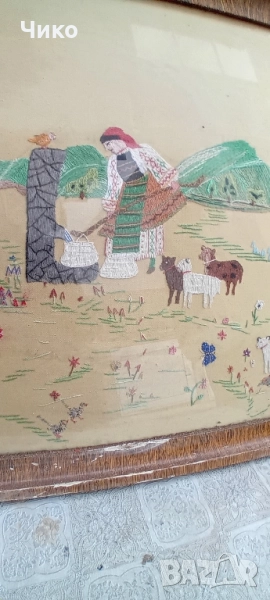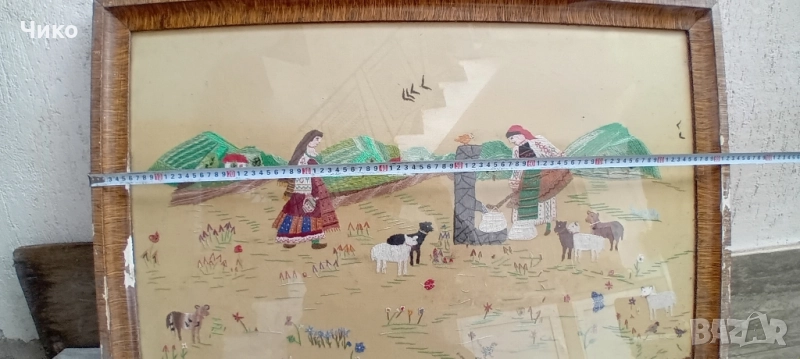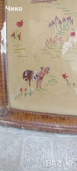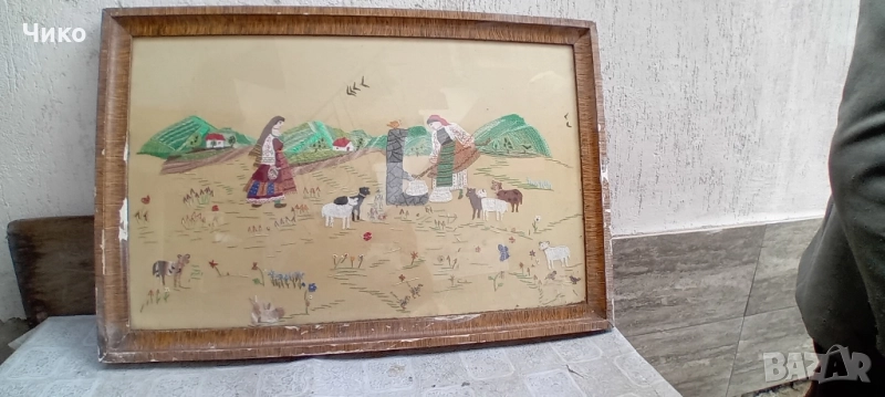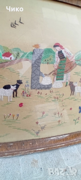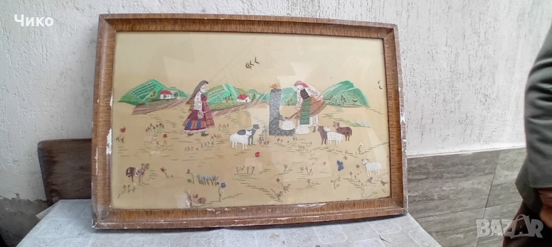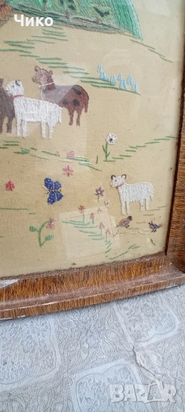 Стар голям здрав автентичен панорамен ковьор,ръчно бродиран рамкиран и остъклен.антикварен!