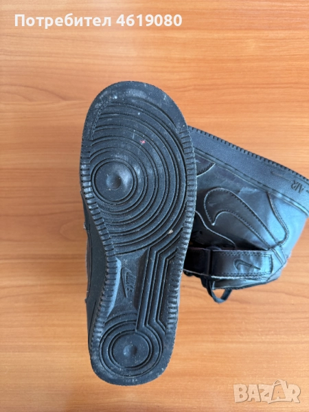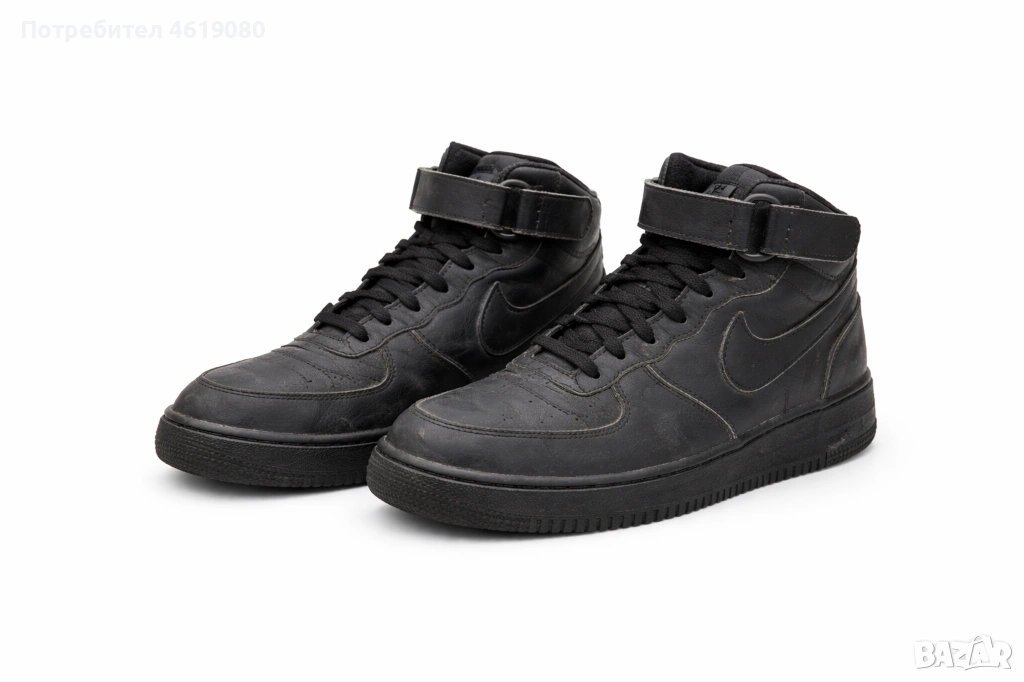 Продавам оригинални Nike Air Force 1 High, черни на цвят. Класически модел с висока визия, връзки и велкро лепенка около глезена за по-добра стабилност.