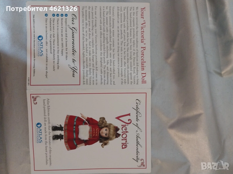 Колекционерска порцеланова кукла Виктория като нова, лимитирана серия, сертификат