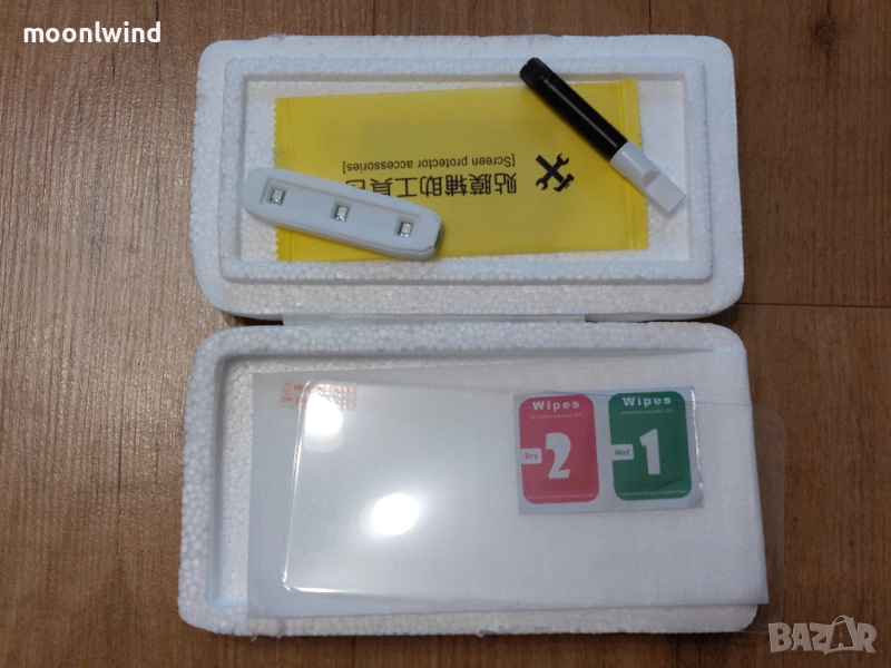 - 1 резервен извит стъклен протектор (напълно прилепващ, не само по периферията) за дисплея, като поставения в момента