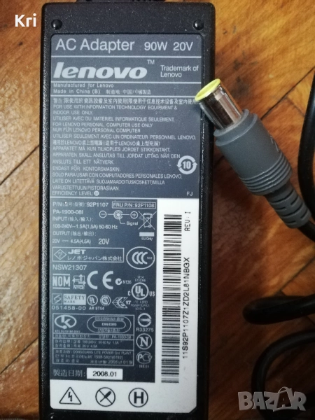 Зарядно за лаптоп Lenovo 90w 20v, снимка 1 - Други - 52057534 Зарядно за лаптоп Lenovo 90w 20v, снимка 2 - Други - 52057534 1/2