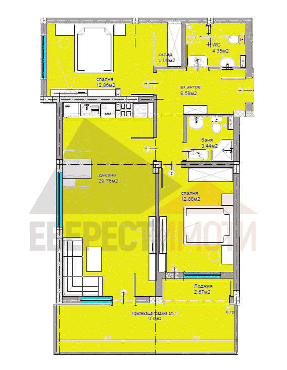 Оферта 2293. ДИРЕКТНО ОТ ИНВЕСТИТОР, БЕЗ КОМИСИОН!! ЛУКСОР 6 представлява една малка сграда в озеленен двор/2200кв.м./ обединяващ спокойствие, сигурност, функционалност, лукс и чудесно местоположение. Всичко това на едно място и на изгодни цени!!! Предлагаме Ви чудесен ТРИСТАЕН АПАРТАМЕНТ с възможност за закупуване на ПАРКОМЯСТО във вътрешен двор или ГАРАЖ. СГРАДАТА е с красива архитектура на прекрасно място, с визия прилягаща за квартала и скатни покриви с керемиди. Апартамента се състои от слънчева дневна с трапезария и кухненски бокс, две хубави спални, две бани с тоалетни, входно антре, склад, тераса и самостоятелен двор-веранда 14,85м2. Строителството е прецизно с много високо качество на изпълнение и материали: керамична тухла, немска 5-камерна дограма от най-висок клас с мултифункционално стъкло, дизайнерско стълбище/виж галерия/ от естествен камък и облицовка на фасадата, 10 см. външна топлоизолация, парапети на стълбището и терасите от ковано желязо, блиндирани входни врати, безшумен асансьор, домофонна система с видеонаблюдение, декоративни елементи по фасадата, LED осветление по общи части и фасада и много други екстри за живущите. Жилищата се издават на шпакловка и замазка с изградена ел. инсталация с контакти и ключове, ВиК на тапа, входна блиндирана врата от най-висок клас. Мястото е тихо и много спокойно, като в близост има зеленчуков пазар, детска градина, училище, болница и автобусни спирки. ЧУДЕСЕН за инвестиция и живене поради близостта си до големи университети. Разсрочено плащане в рамките на строителството. Агенция ЕВЕРЕСТ ИМОТИ съдейства за закупуването чрез банков кредит от водещи банки на преференциални условия за клиентите си!!