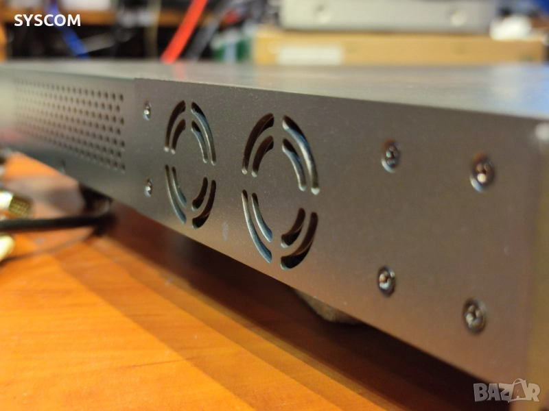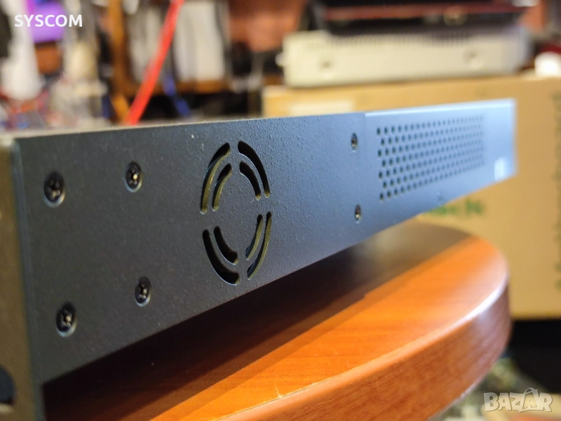 SFP слотове: Оборудван е и с 4 споделени SFP (Small Form-factor Pluggable) слота за оптични трансийвъри.