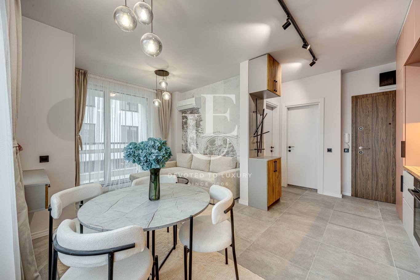 Апартаментът се предлага напълно обзаведен и оборудван с висок клас електроуреди, като всеки детайл е подбран с вкус и внимание- перфектна комбинация между практичност и комфорт.