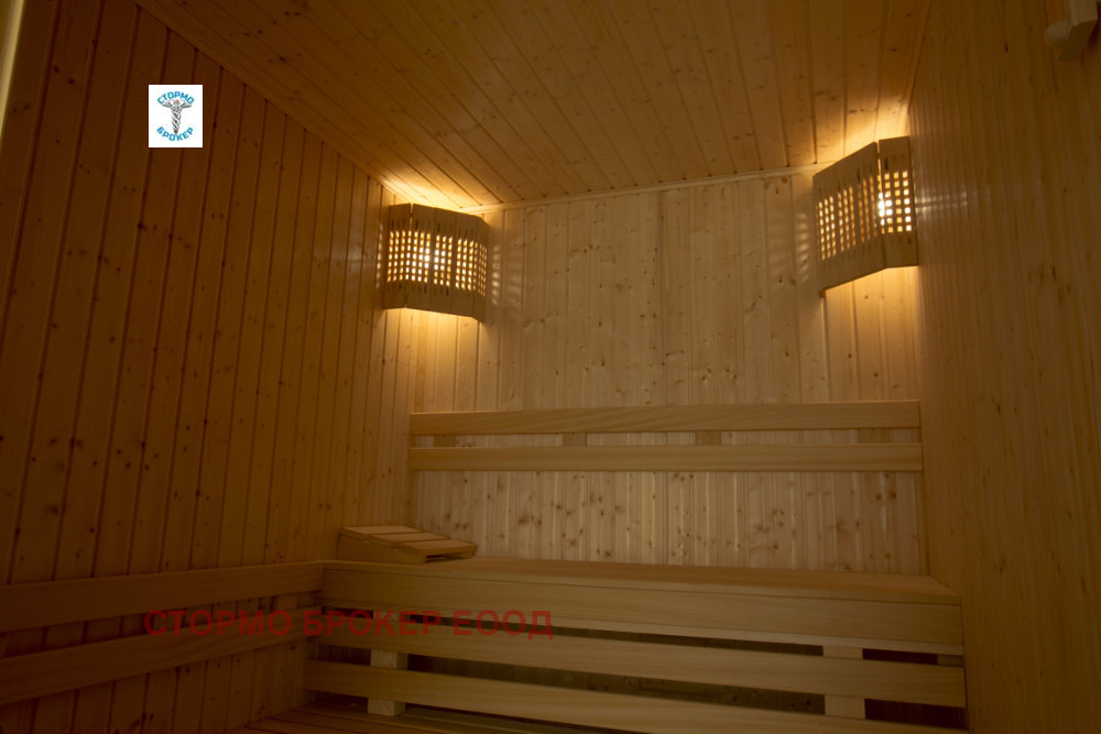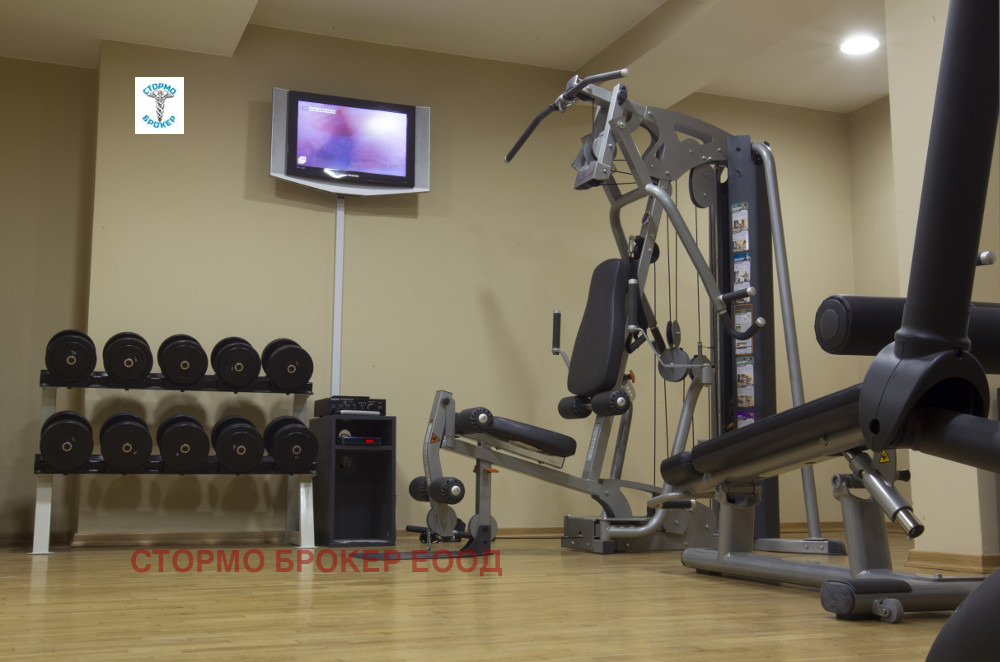 Сградата разполага с подземен гараж, фитнес, спа зона със сауна и парна баня