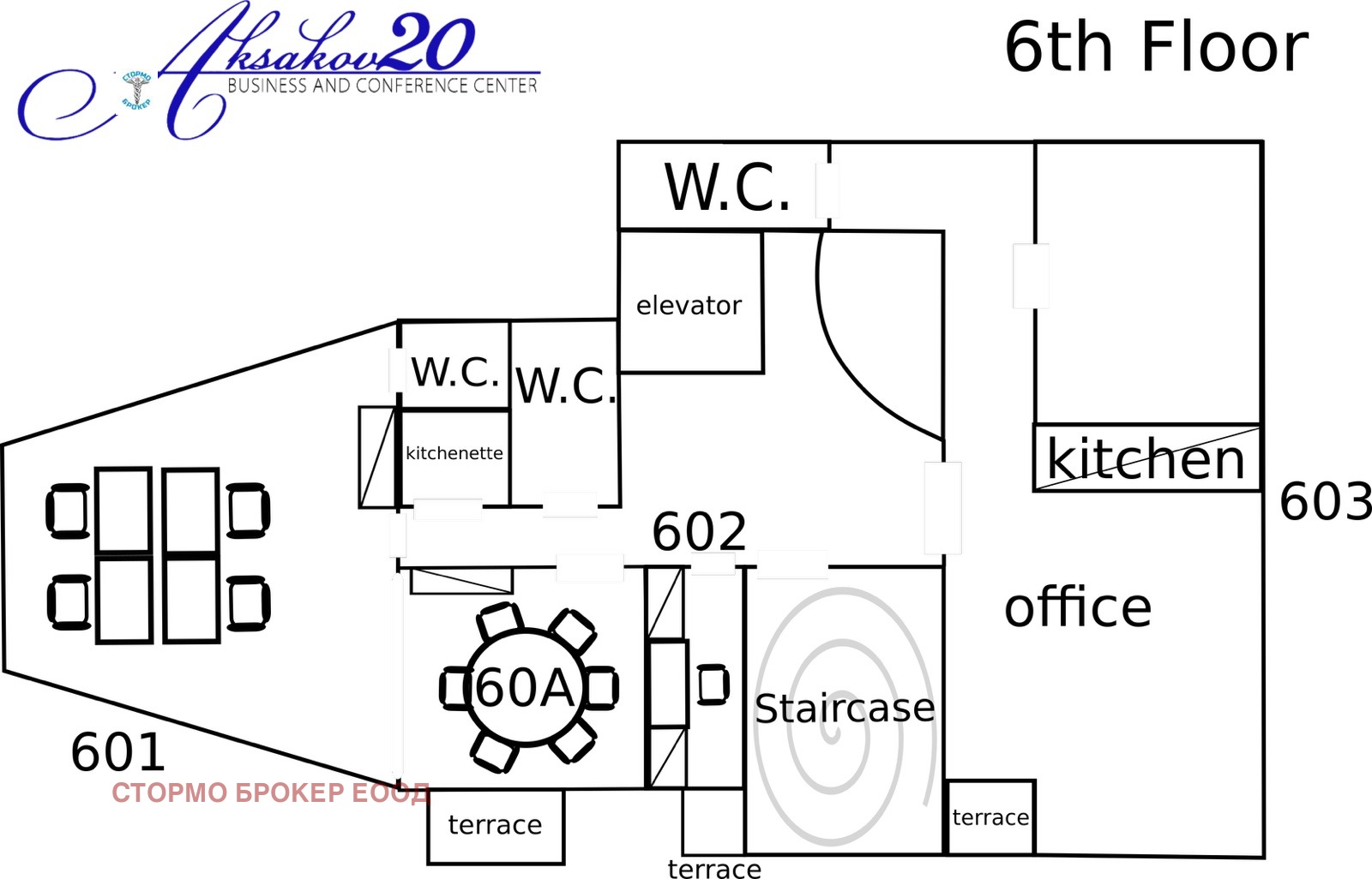 Площите представляват 3 етажа от офис сграда, като всеки етаж е с приблизителна площ от 200 кв.м.