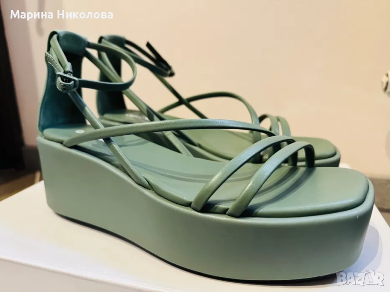 Сандали от естествена кожа на Calvin Klein в зелен цвят. Обувани веднъж. В отлично състояние.