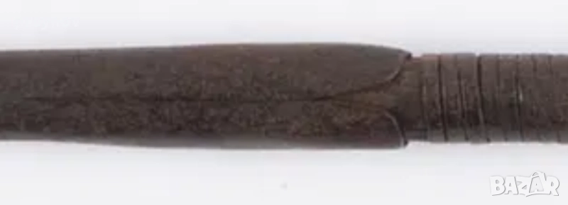 обковано с метал за да може да противодейства на мечове, ками, ножове и други