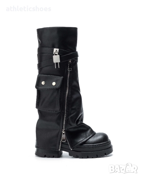 Дамски ботуши с платформа,подвижни декорации и цип от външната страна,цип и от вътрешната страна за лесно обуване.Създадени за жени, които обичат да изглеждат зашеметяващо и не правят компромис с удобството. Стил ,комфорт и височина -всичко в една крачка.Перфектни за градския стил или вечерно излизане.✨✨Материал : Екологична Кожа