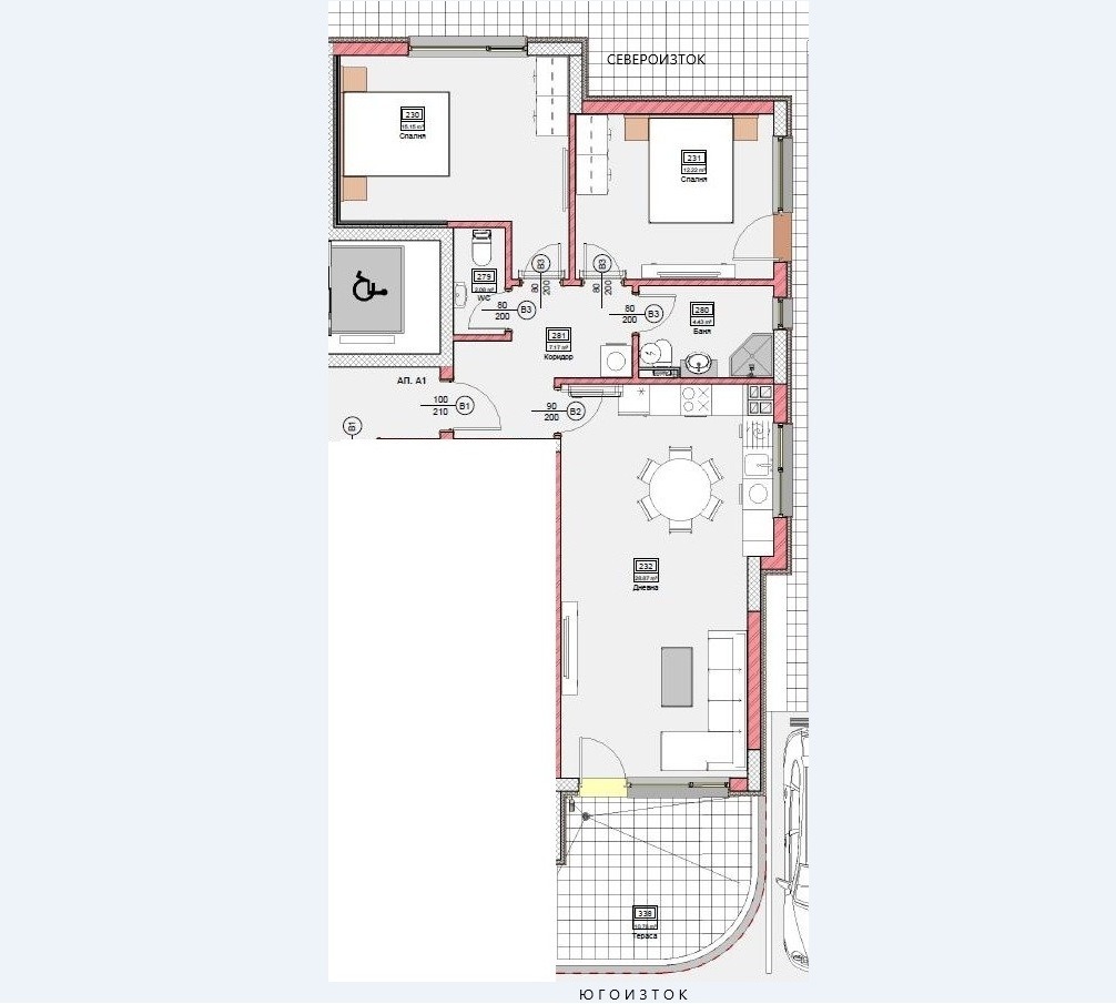 Тристайният апартамент се намира в десететажна тухлена сграда с асансьор, на начален етап на строителство. Очаква се да бъде въведена в експлоатация през 2027 г. Има възможност за допълнително закупуване на закрито паркомясто - 25 000 евро.