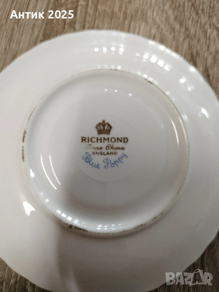 Чайна чаша с чинийка Richmond Bone China – “Blue Poppy”, Англия 🇬🇧