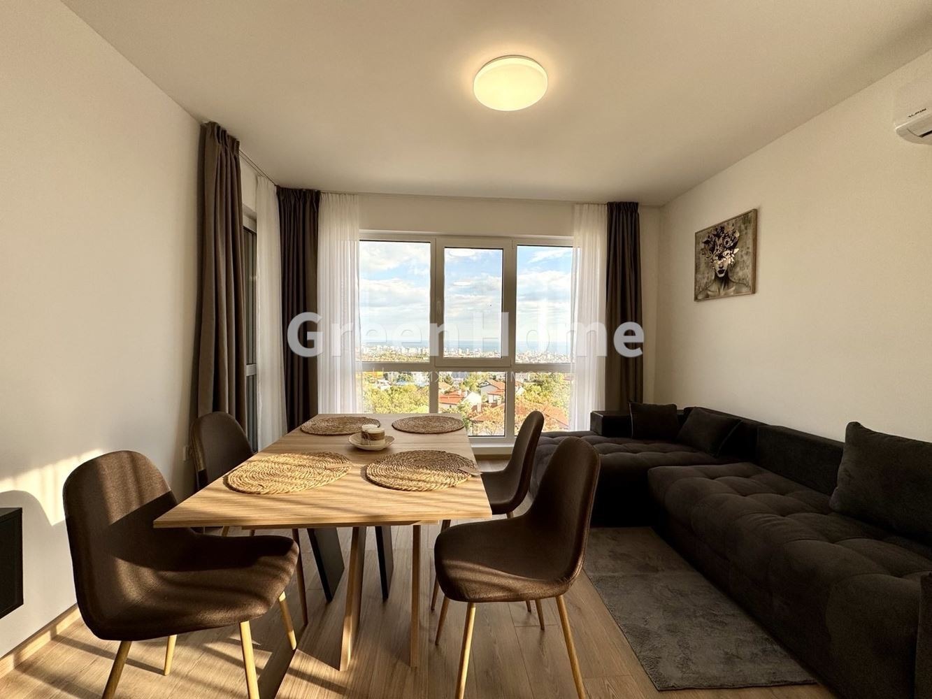 Апартаментът е много слънчев, с панорамна гледка към морето и града. Югозападното изложение гарантира отлична осветеност и уют през целия ден.