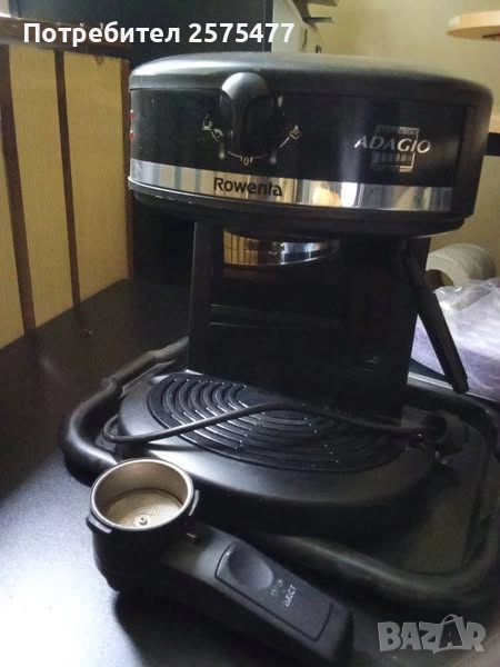 кафе машина ROWENTA мод.ADAGIO-ESPRESO-15 бара налягане, 1000 W, 50HZ, произведена във Франция, . За по-лесно и удобно изчистване на дозата има бутон на дръжката, която повдига цедката и отпадъка пада лесно.Има система за капучино и чай. Наливайте трапезна вода за добро качество. Без кафемелачка. . Цена 70лв.Намира се в София 0882825029