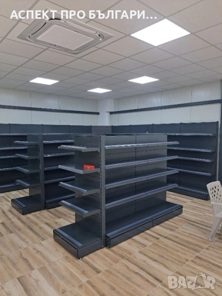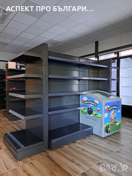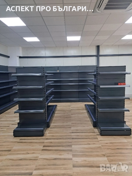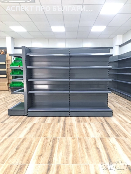 Крайстенни, двустранни и затварящи стелажи с възможност за различни конфигурации. - Крайстенен стелаж 40*1,95м. (Н), B40+4*30, L100 с плътни гърбове, ценови ленти, колона с основа - 190,00 лева/97,15 евро (посочената цена не включва данък върху добавената стойност)
