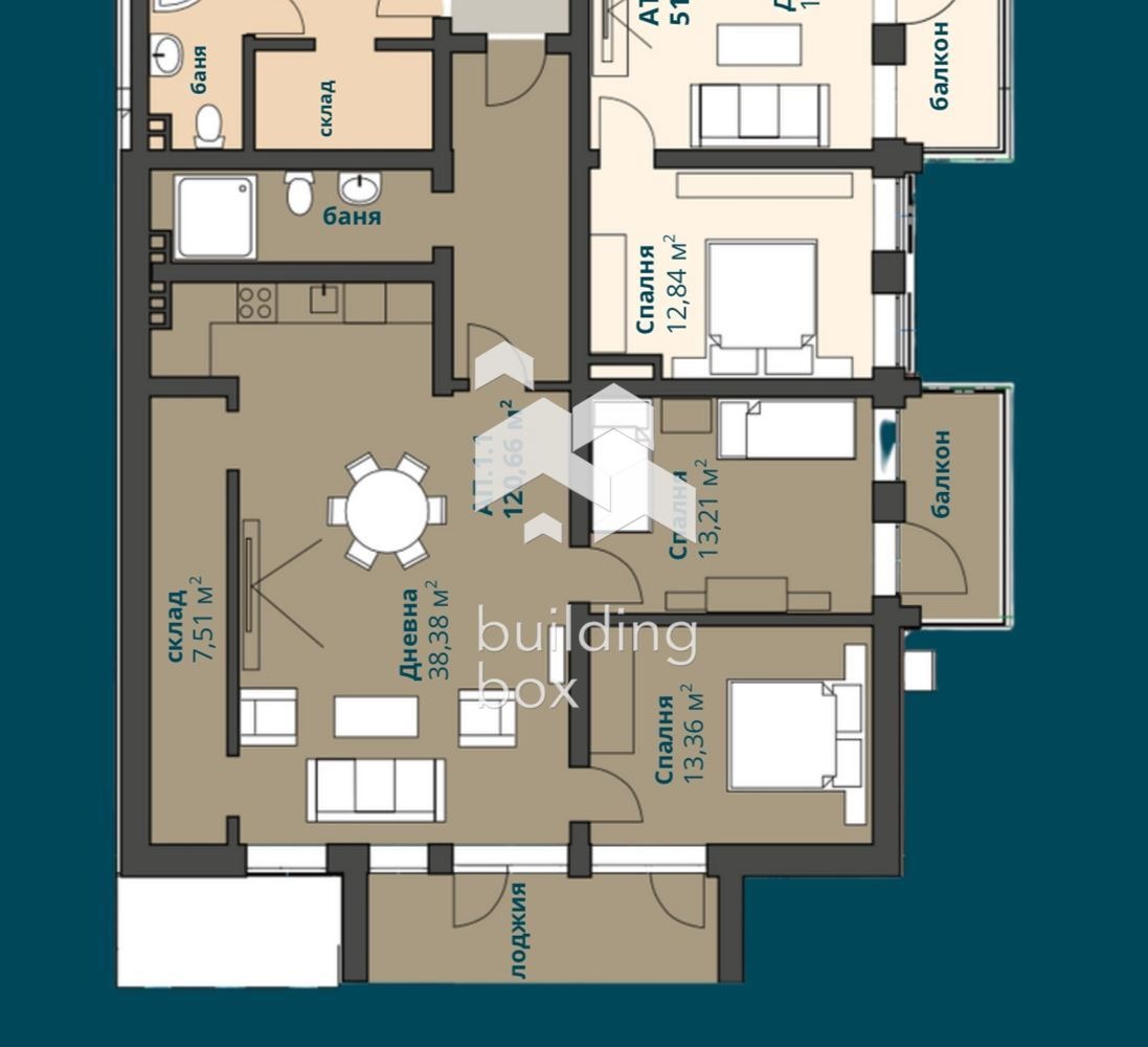 Имотът е с много добро разпределение, със застроена площ от 120,66 кв.м.